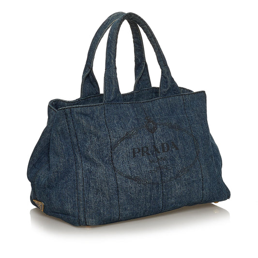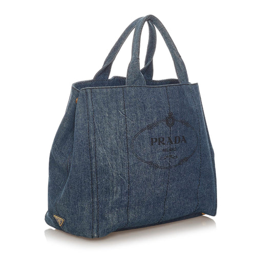 Prada Canapa Logo Denim Tote Bag (SHG-29654)