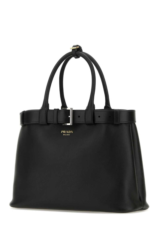 Prada Women Black Leather Prada Buckle Large Handbag