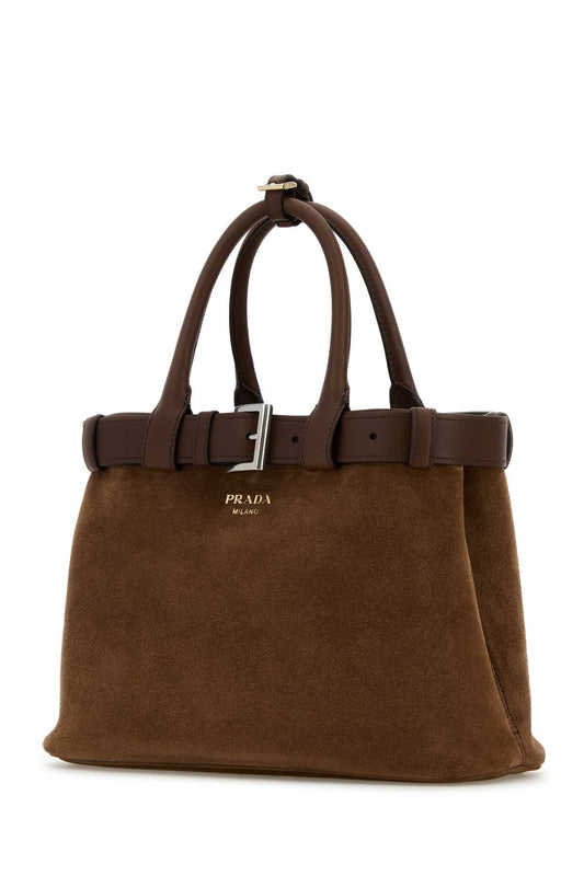 Prada Women Brown Suede Prada Buckle Medium Handbag