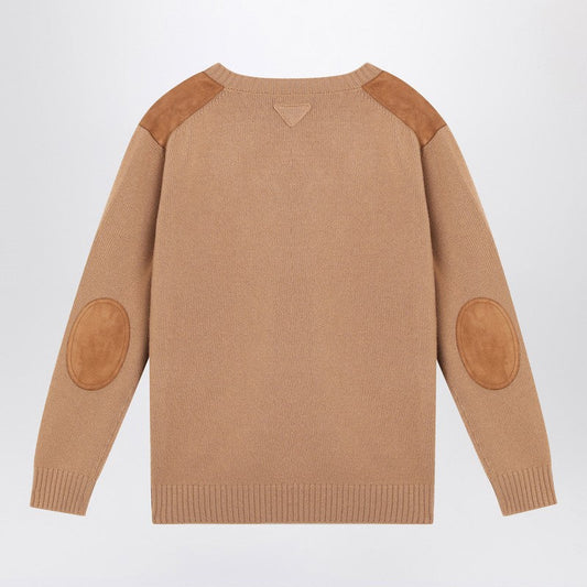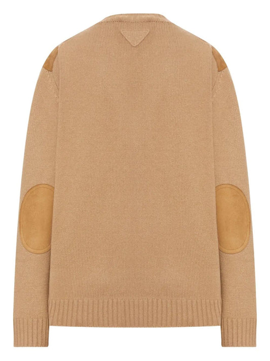 Prada Women Suede-Panel V-Neck Wool Sweater