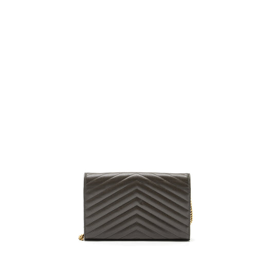 Saint Laurent/YSL Envelop Chain Bag Grained Calfskin Dark Green GHW
