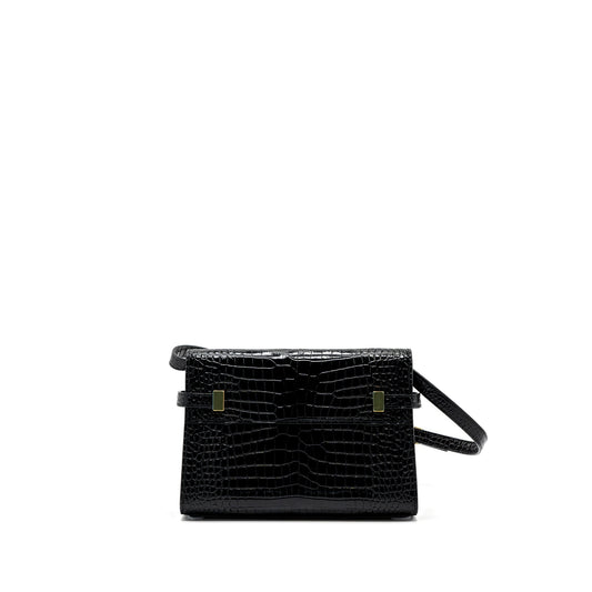 Saint Laurent Manhattan Shoulder Bag Crocodile-Embossed Black GHW