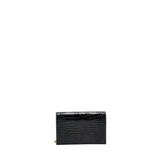 SAINT LAURENT / YSL Classic Chain Wallet Croc-Embossed Calfskin Black SHW