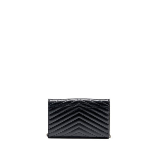 Saint Laurent Envelope Wallet on Chain Grained Calfskin Black SHW