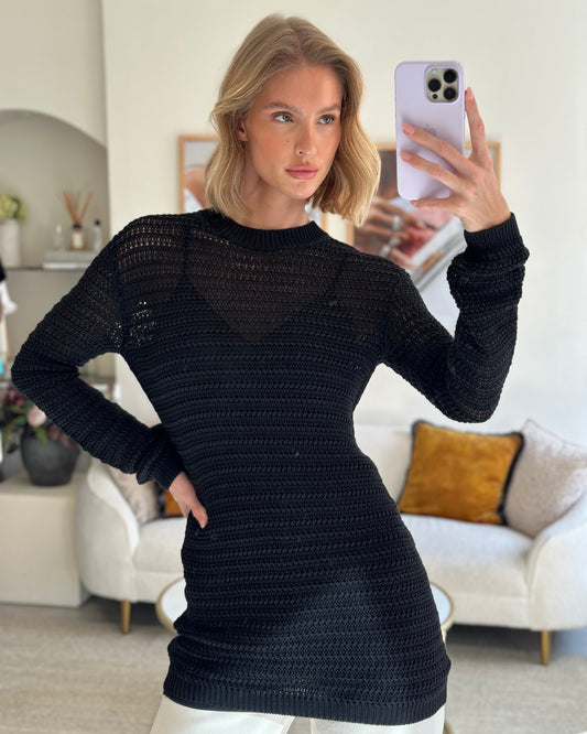 Saint Laurent Black Sheer Knitted Long-Sleeve Jumper Size S (UK 8)