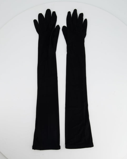 Saint Laurent Black Long Jersey Gloves Size 7.5