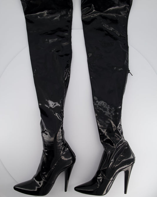 Saint Laurent Black Patent Knee High Leather Boots Size EU 40