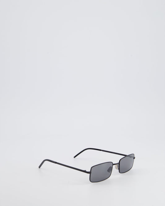 Saint Laurent Black Rectangular Sunglasses With Matte Black Metal Frame