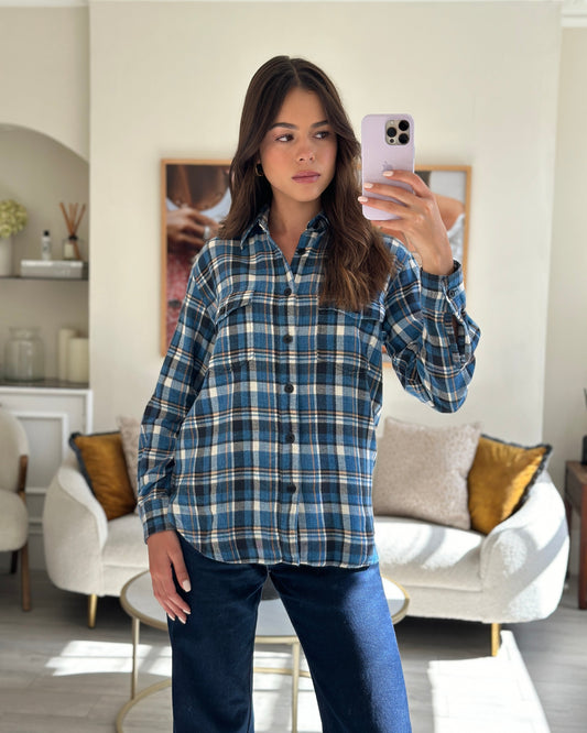 Saint Laurent Blue Plaid Long Sleeve Shirt Size S (UK 8)