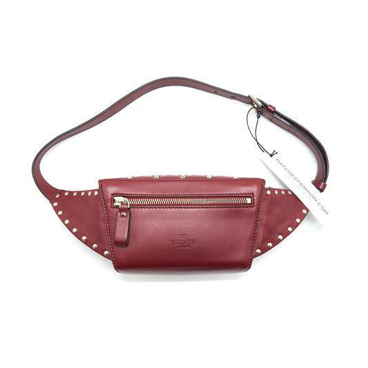 VALENTINO Rockstud Spike Quilted-leather Belt Bag Burgundy 95cm