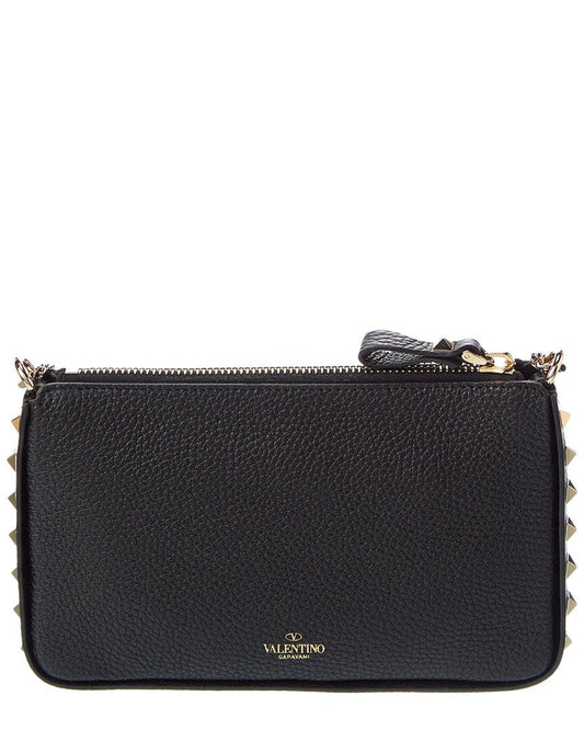 Valentino Rockstud Grainy Leather Wallet On Chain