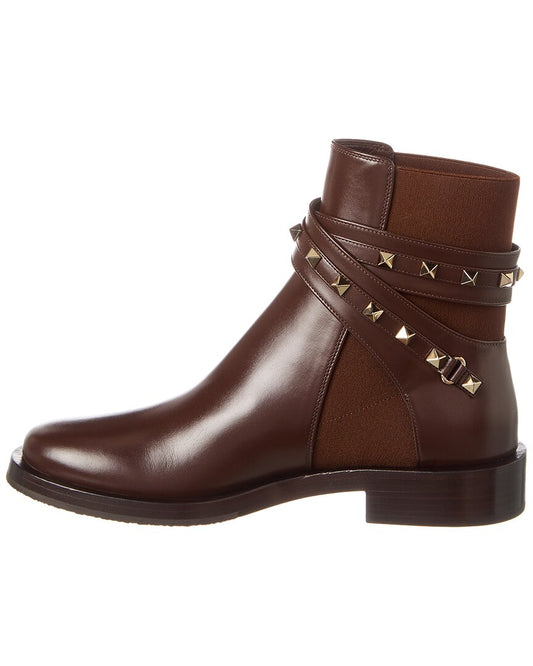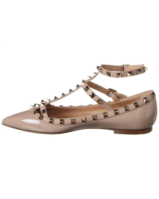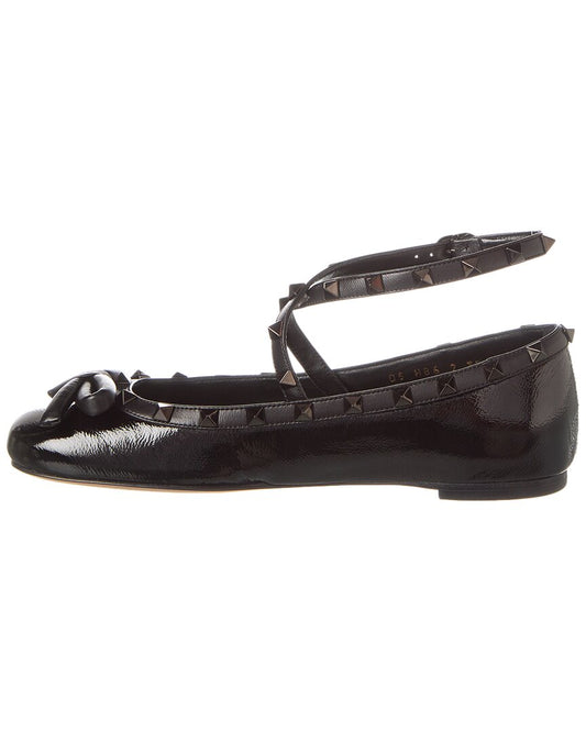 Valentino Rockstud Satin & Leather Ankle Strap Ballerina Flat