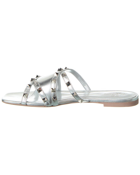 Valentino Rockstud Satin & Leather Ballerina Flat