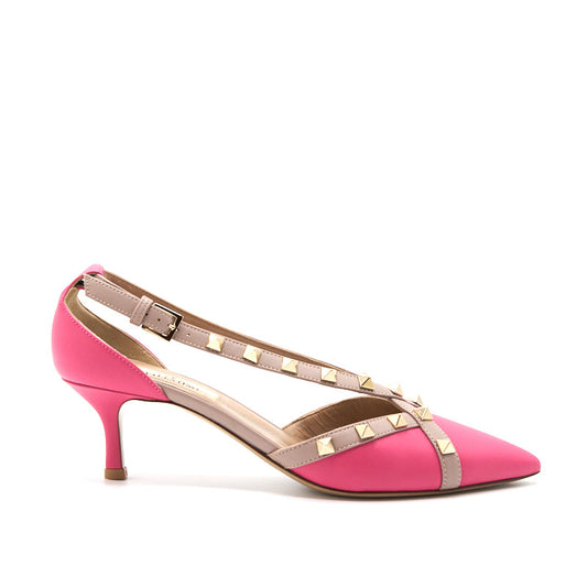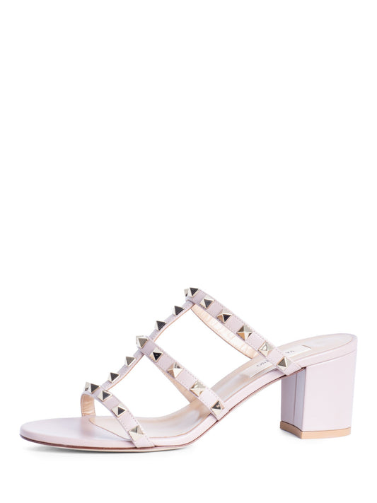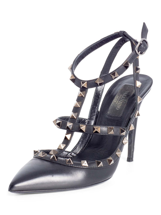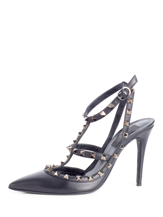 Valentino Leather Rockstud T Strap Heels Ivory Black