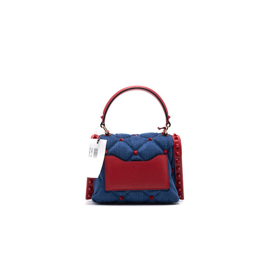 Valentino Logo Leather Rockstud Zippered Clutch Blue Gold