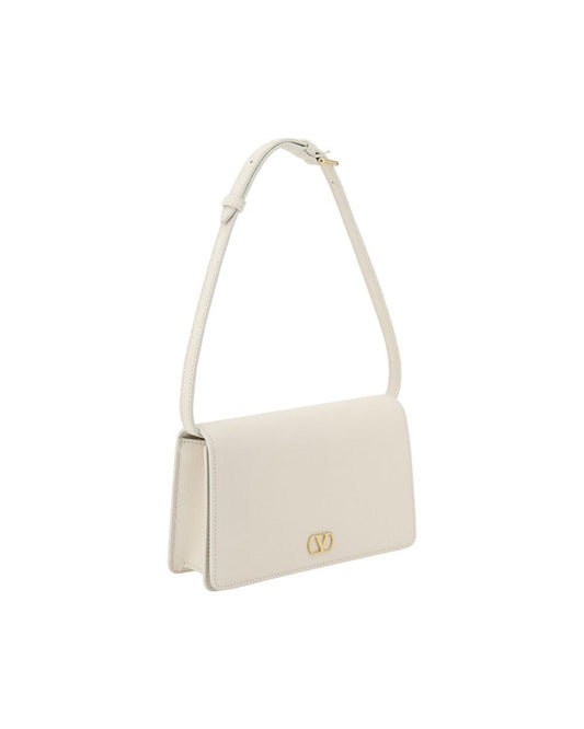 Valentino Garavani VLogo Hammered Leather Shoulder Bag with Adjustable Strap Women Cream Wallets & Pouches