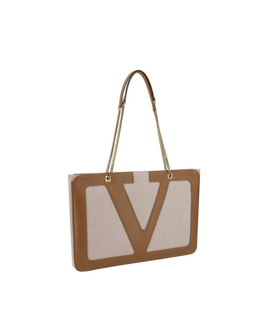 Valentino Garavani VLOGO Shopping Bag Tote Men Beige Shoulder Bags