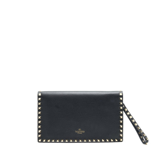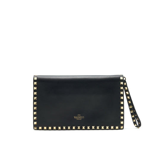 VALENTINO GARAVANI ROCKSTUD LEATHER CLUTCH BAG BLACK