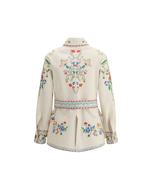 Valentino Floral Embroidered Belted Jacket Women Multicolor Coats