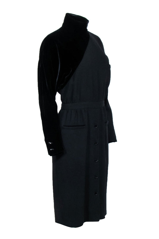 Valentino - Black Velvet Textured Detail Long Sleeve Dress Sz 10