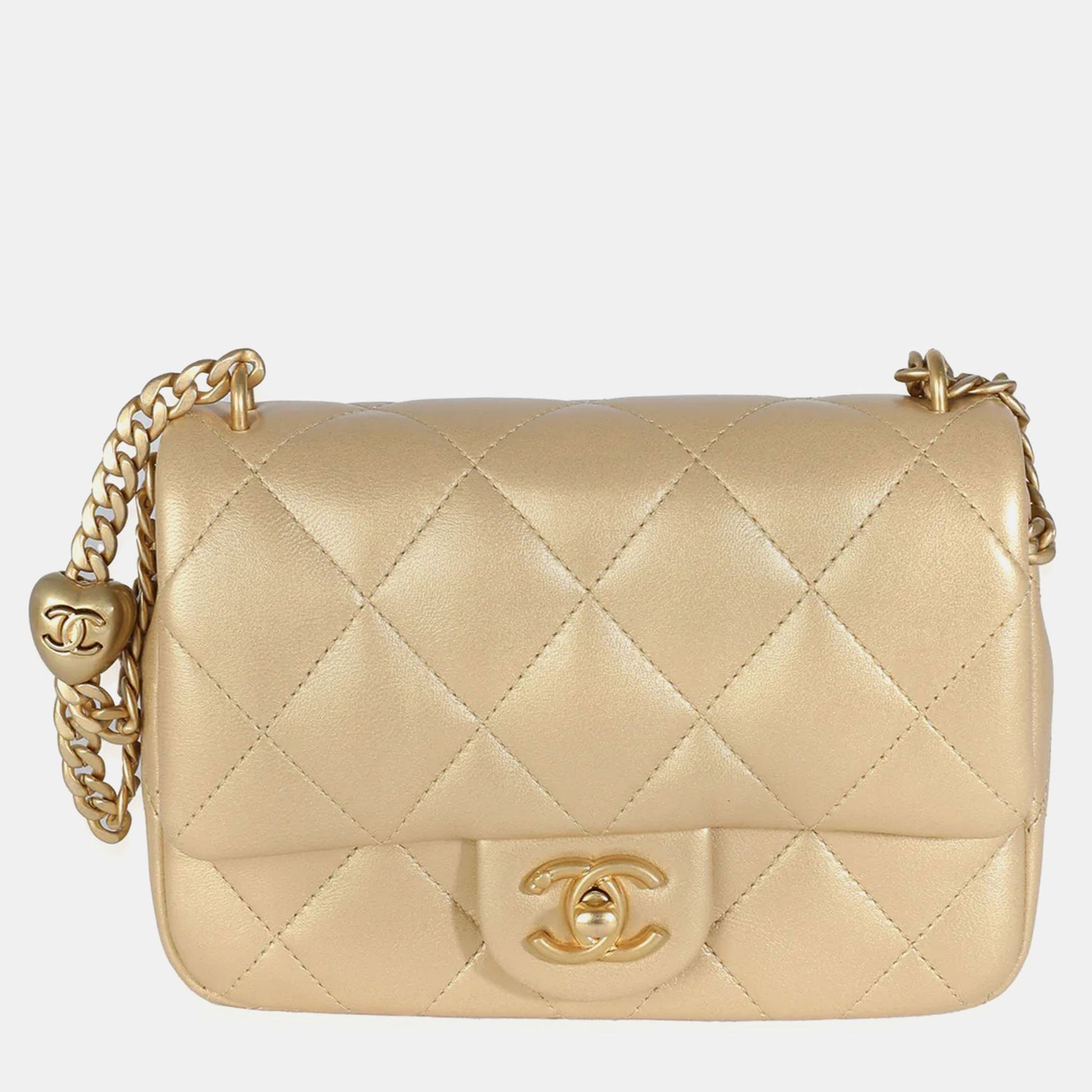 Chanel 23P Gold Quilted Lambskin Mini Sweetheart Flap Bag