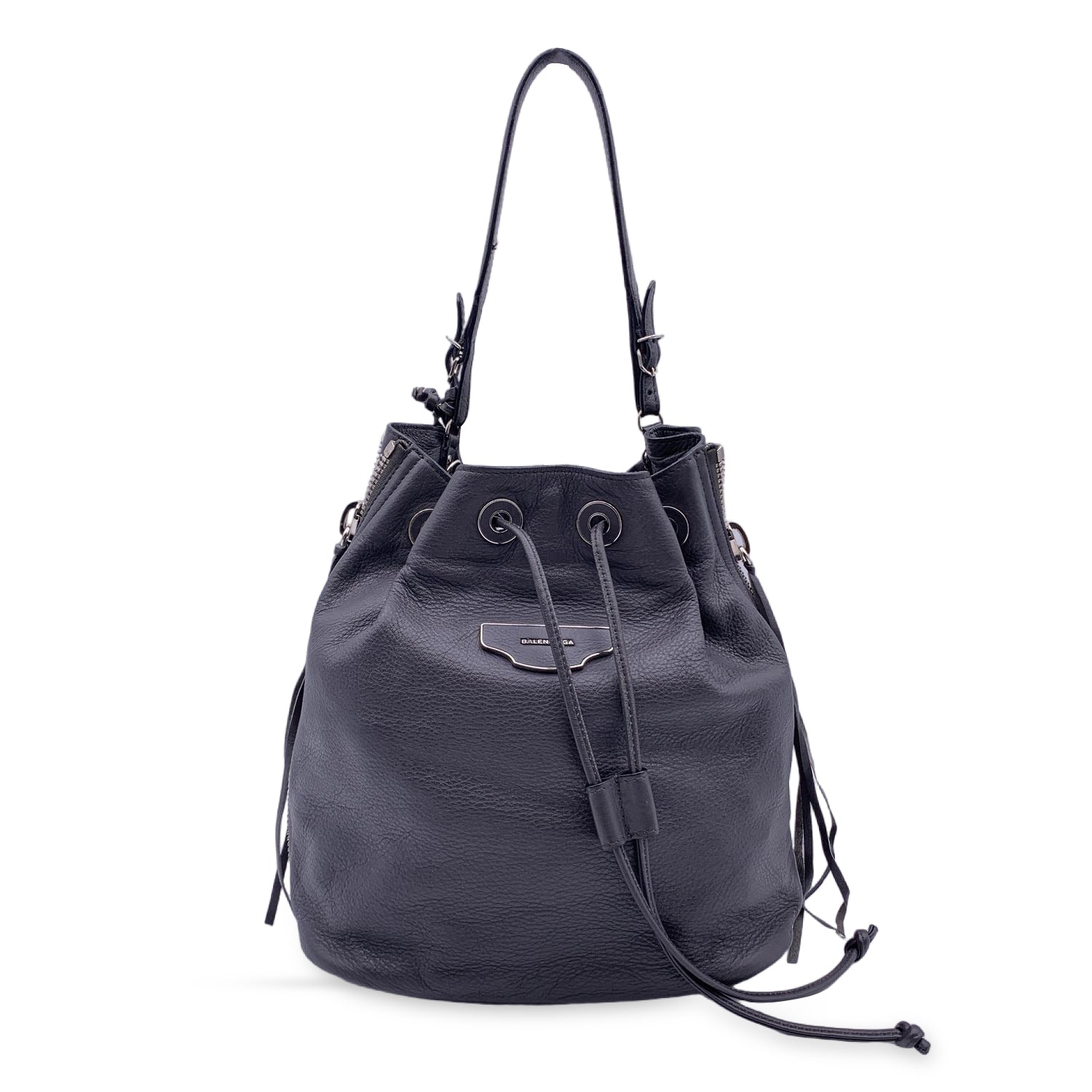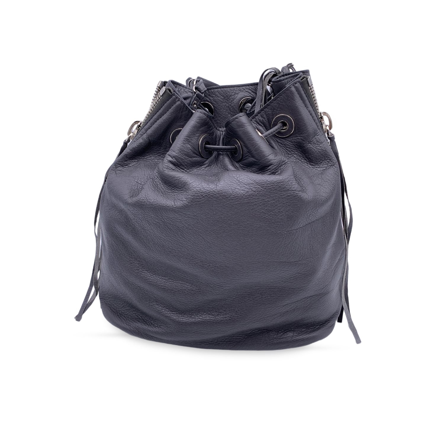 The Certificate Will Be Provided At No Further Cost Balenciaga Grey Leather Papier Plate Bucket Bag.