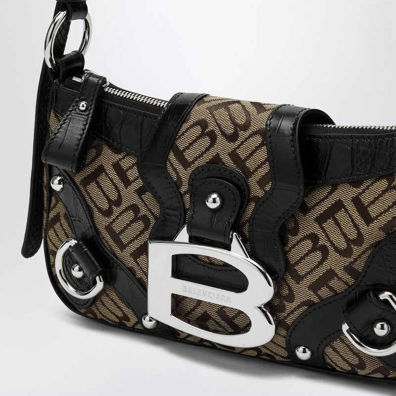 Small shoulder bag by Balenciaga in ebony, beige and black Crazy B jacquard canvas, featuring crocodile and python-embossed calfskin leather inserts, semi-gloss palladium hardware, adjustable shoulder strap, Essex B logo, zip and magnetic flap closure, one main compartment, one inside zip pocket, and leopard-satin lining. Width 27 cm x Height 15 cm x Depth 6 cm Adjustable shoulder strap length min 80 cm - max 105 cm