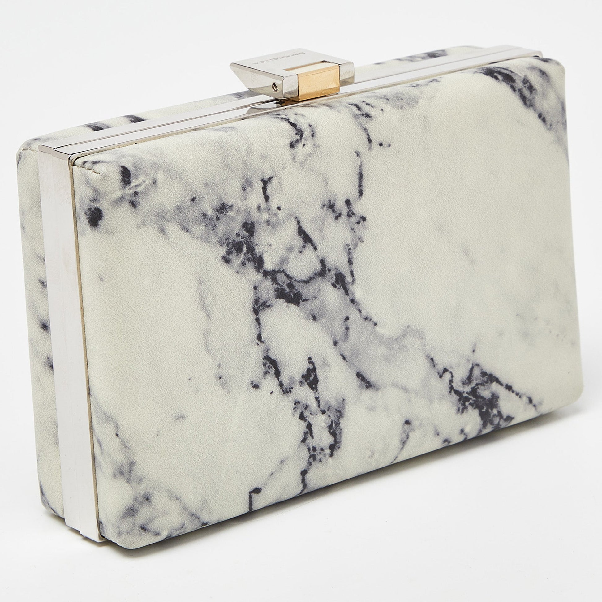 BALENCIAGA Off White/Black Marble Leather Le Dix Minaudiere Box Clutch