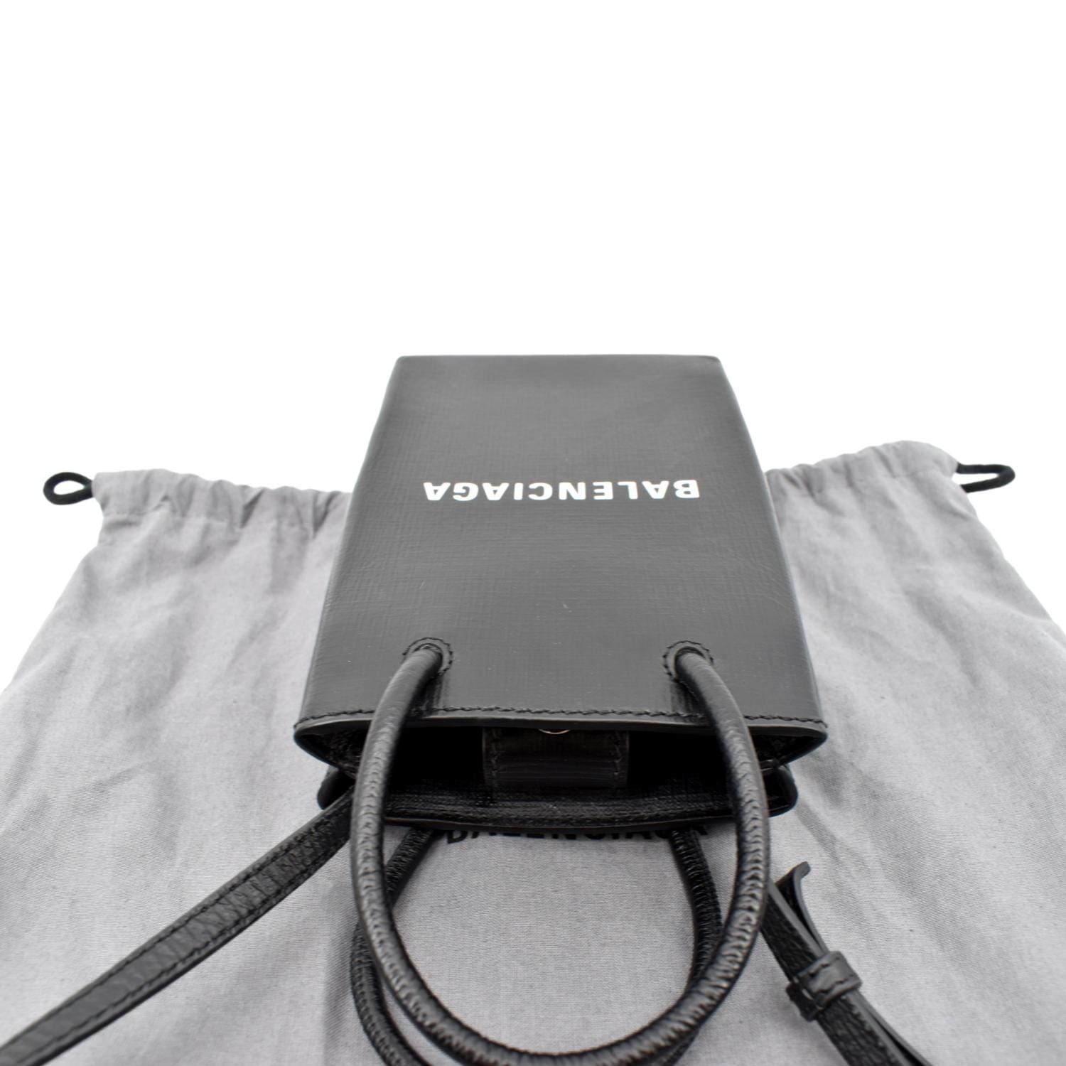 BALENCIAGA Leather Phone Holder Shopping Crossbody Bag Black