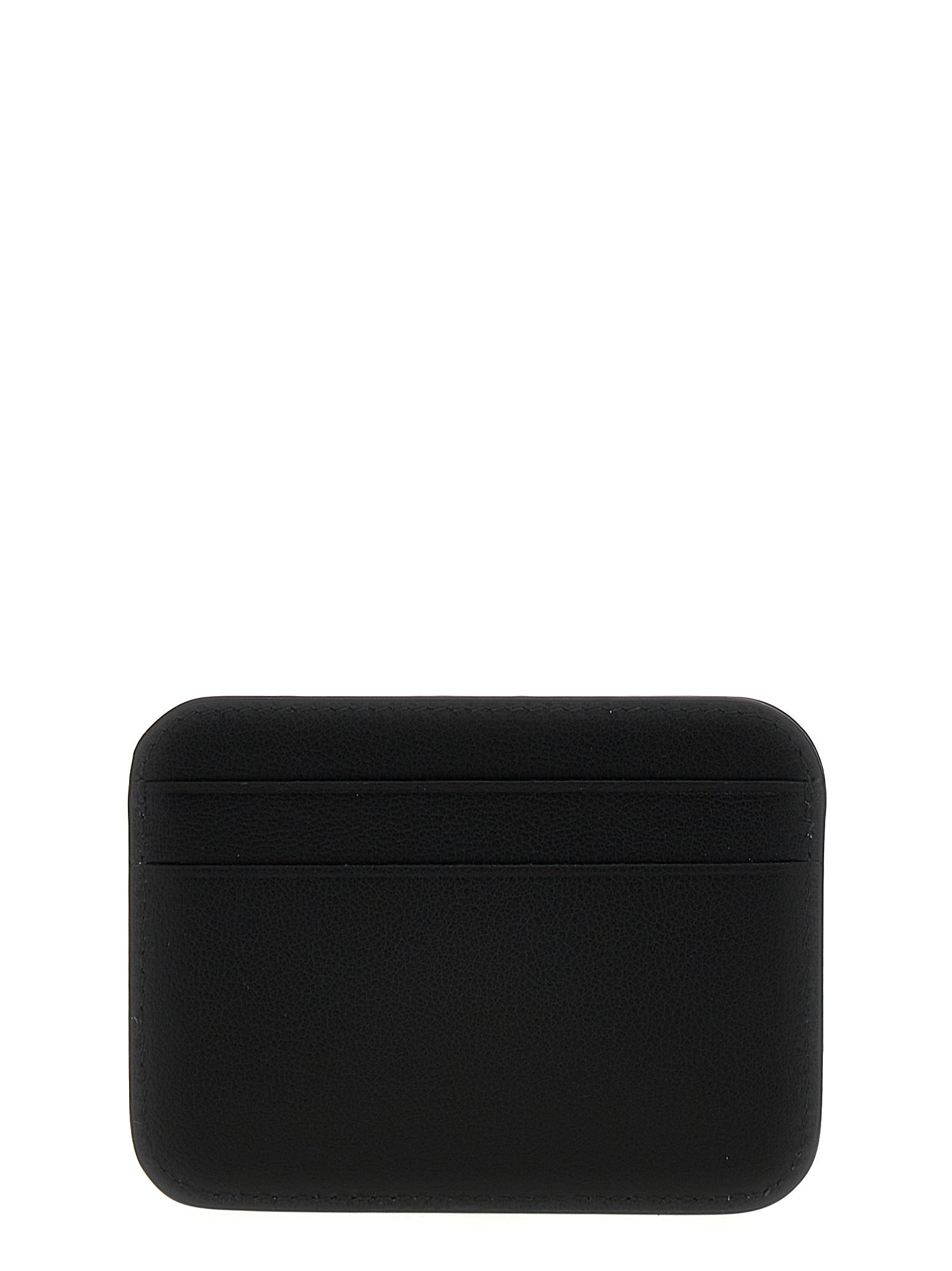 Cash 2.0' smooth calf leather card holder with front embossed logo, rounded edges.