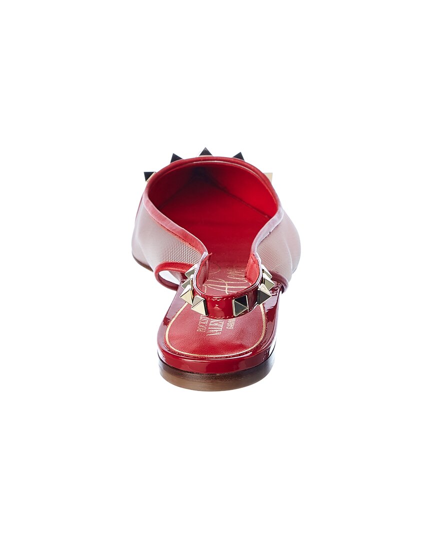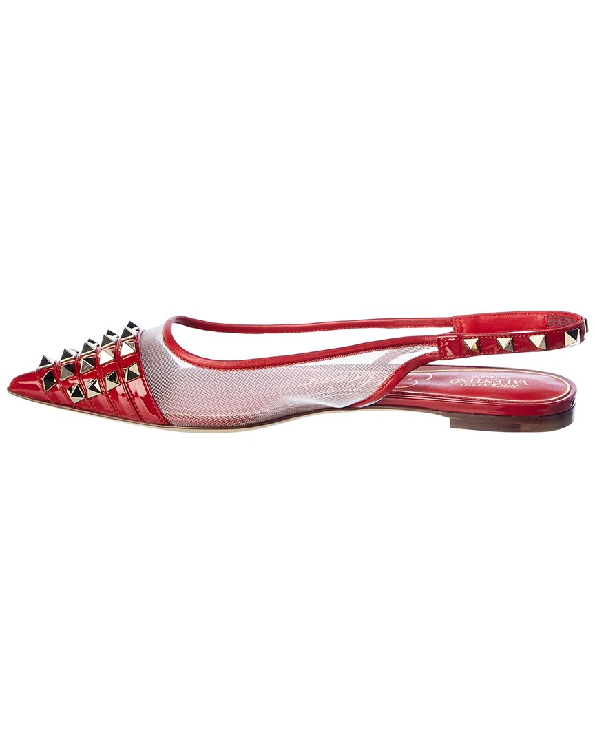- Rockstud Alcove Patent & Mesh Slingback Flat In Red Patent Leather And Mesh With Platinum-Finish Rockstuds