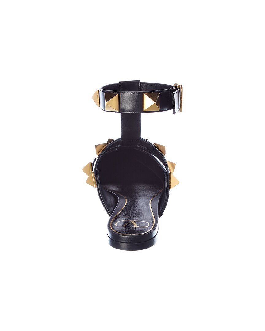 - Roman Stud Leather Ankle Strap Flat In Black Leather With Gold-Tone Hardware And Roman Studs