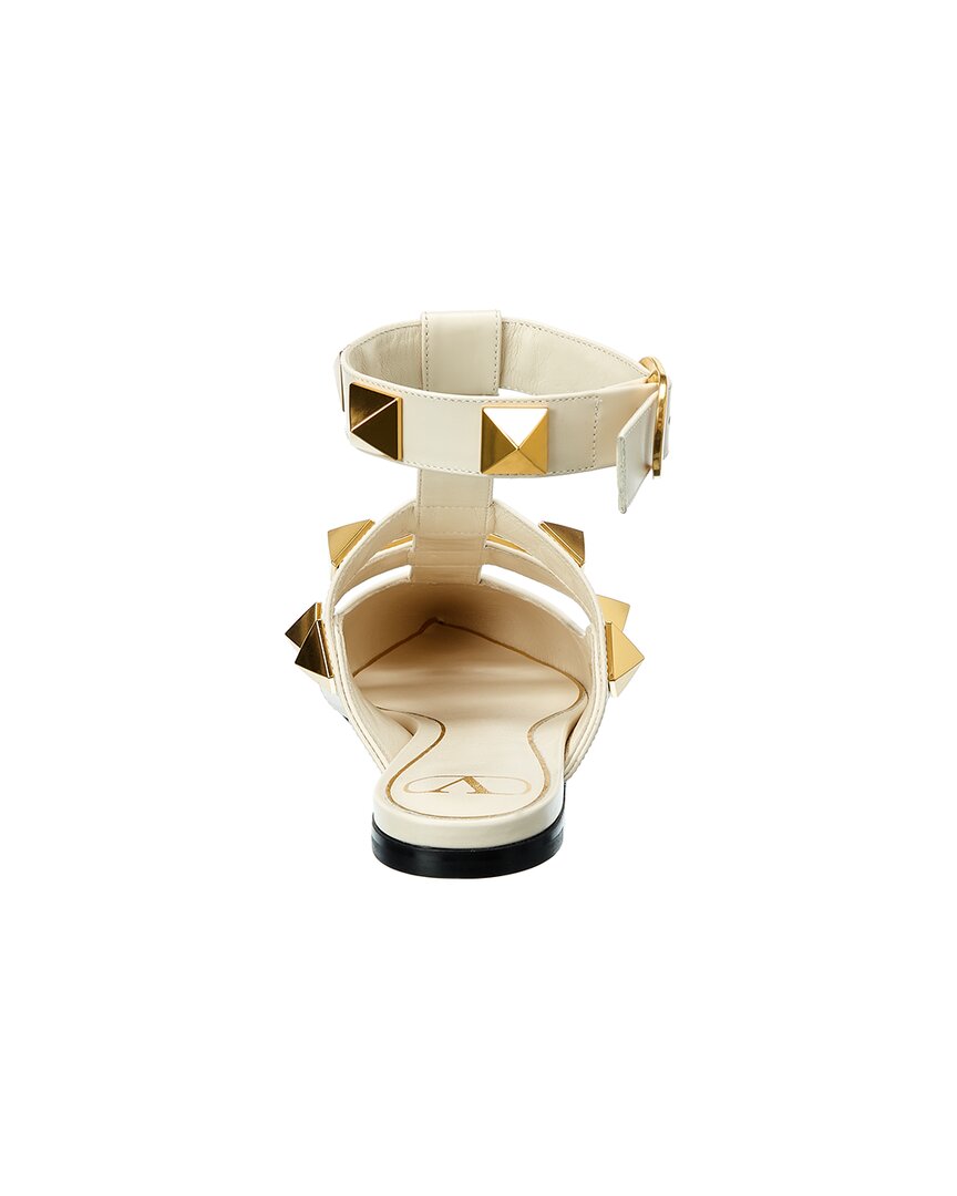 - Roman Stud Leather Ankle Strap Flat In Milk Leather And Gold-Tone Hardware With Pyramid Stud Details