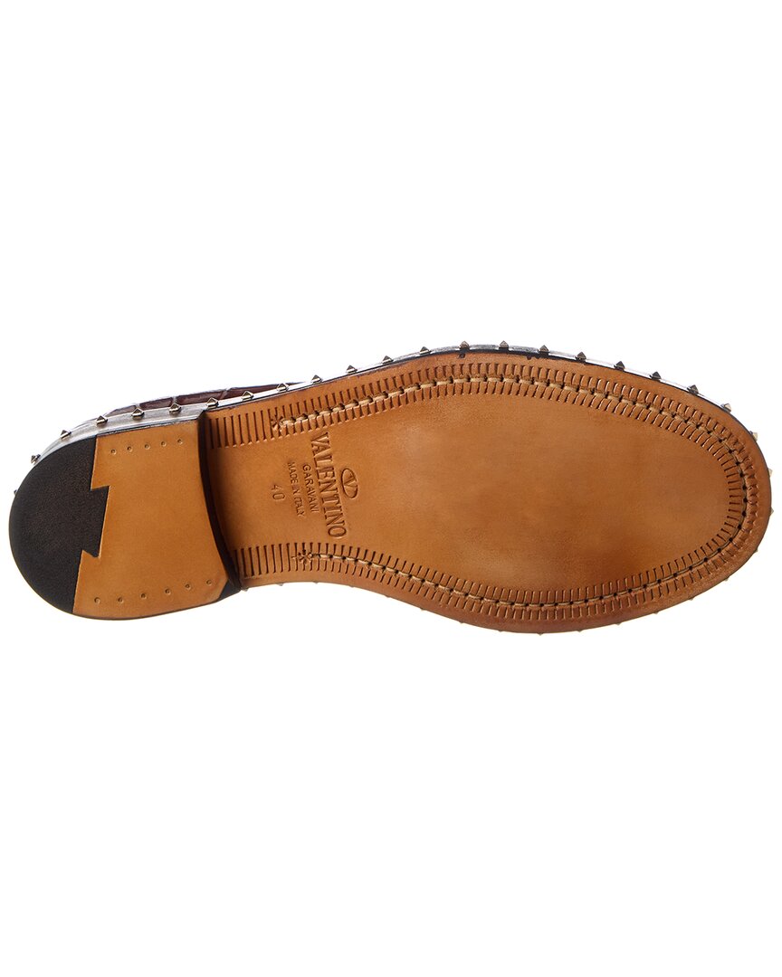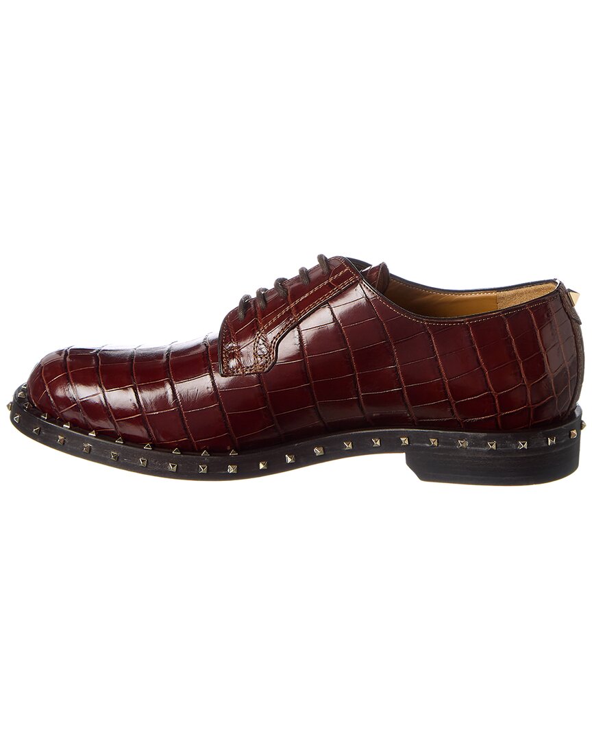Valentino Rockstud Croc-Embossed Leather Oxford