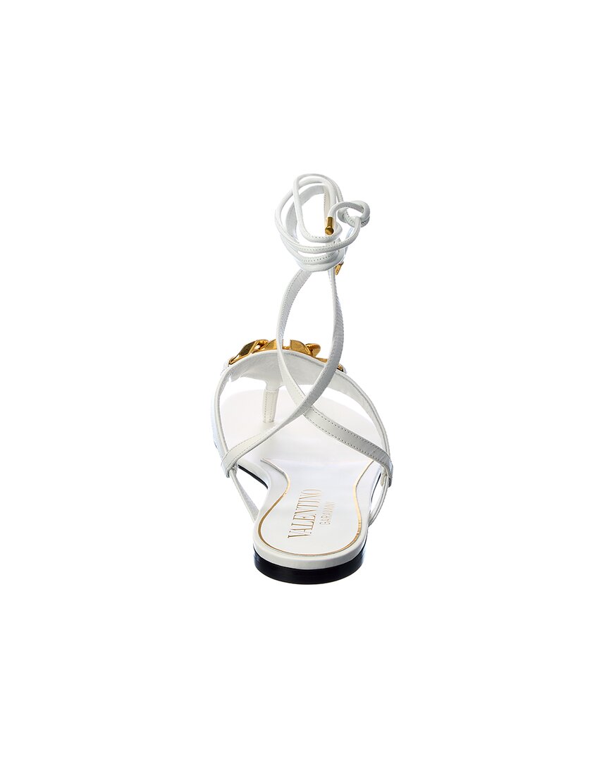 - Vlogo Chain Leather Sandal In Cream Leather And Gold-Tone Hardware With Vlogo Chain Accent