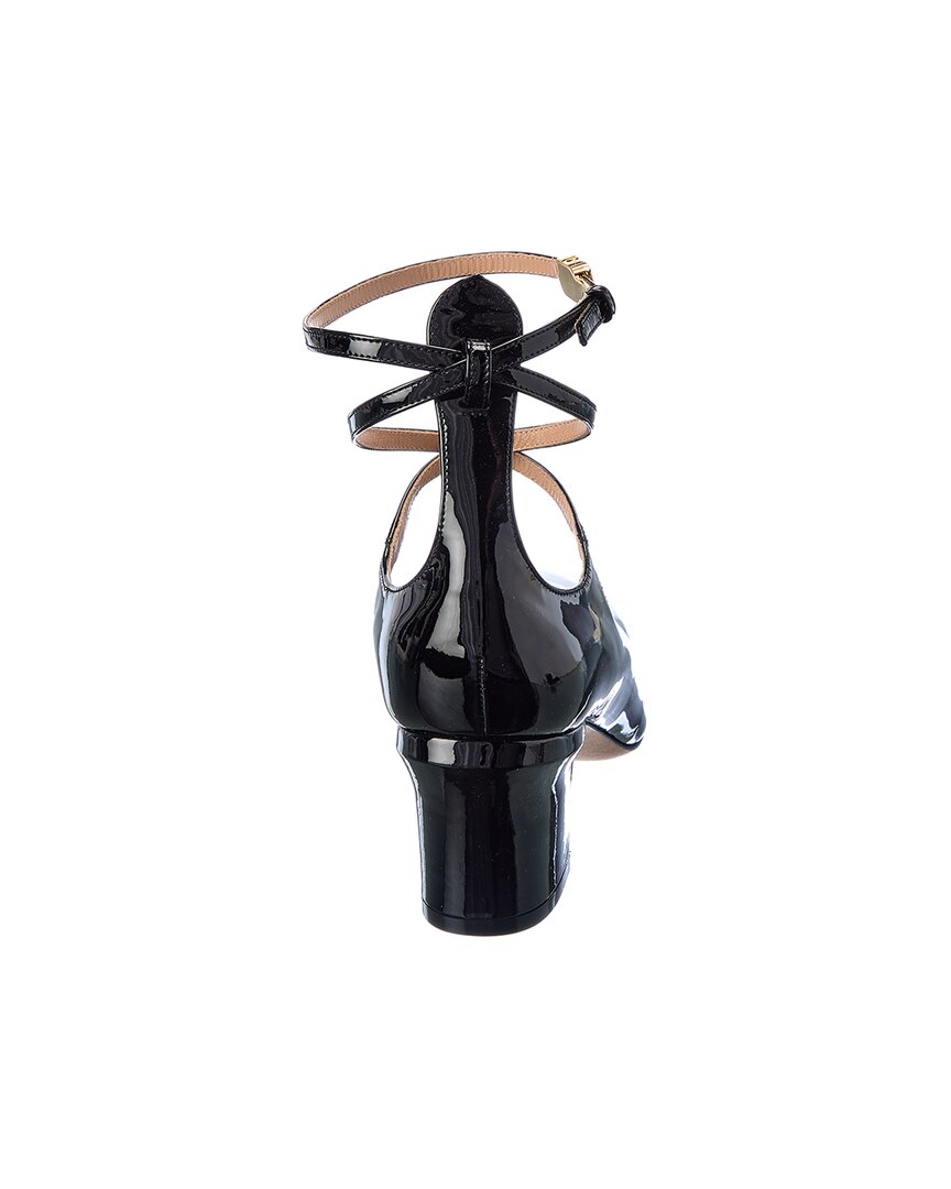 - Vlogo Tan-Go 60 Patent Pump In Black Patent Leather And Gold-Tone Hardware With Wrap-Around Ankle Strap With Vlogo Accent