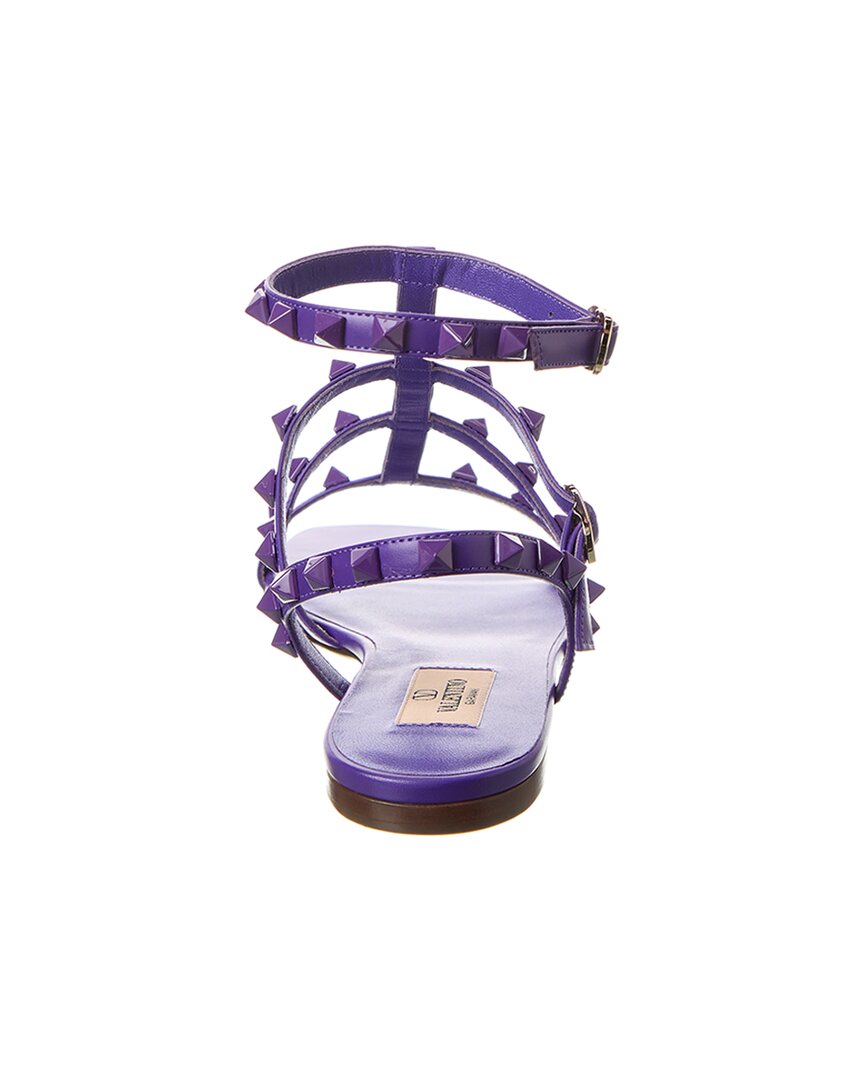 - Rockstud Caged Leather Ankle Strap Sandal In Purple Leather With Tonal Rockstuds