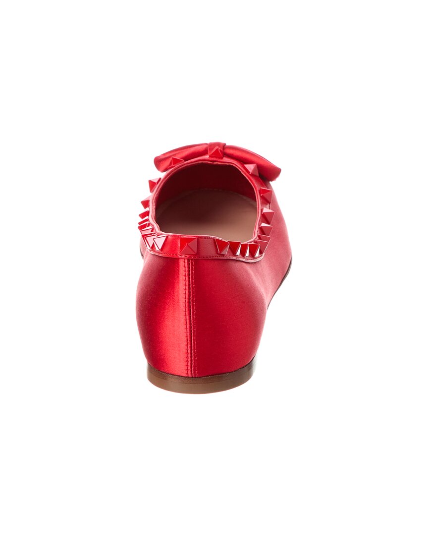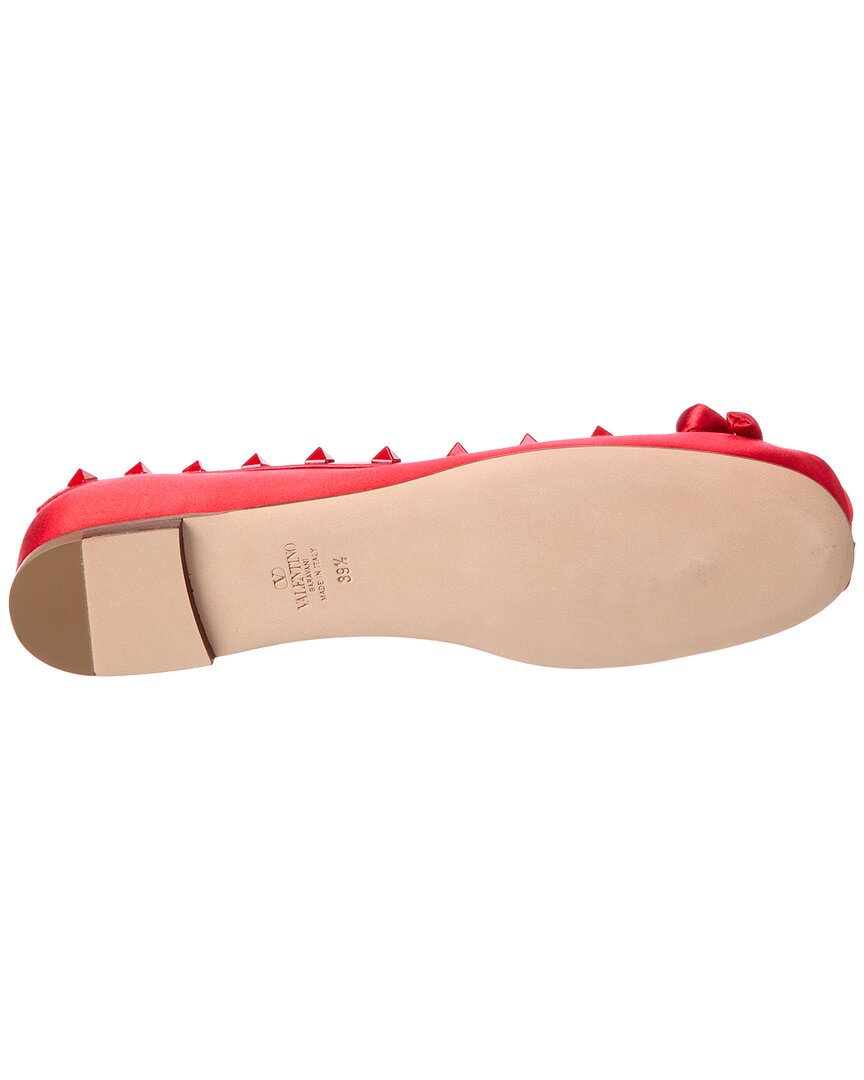 - Rockstud Satin & Leather Ballerina Flat In Red Satin And Leather With Tonal Rockstuds And Bow Detail