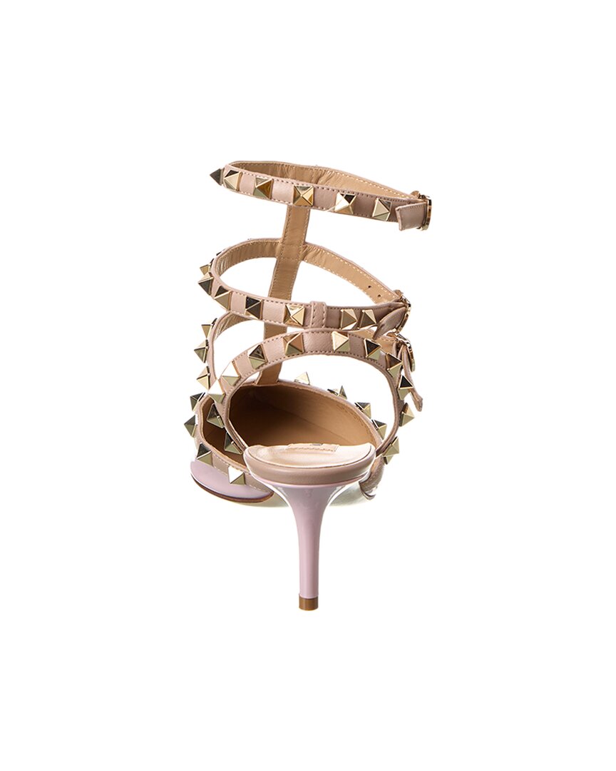 - Rockstud Caged 65 Patent Ankle Strap Pump In Pink Patent Leather With Platinum-Finish Rockstuds And Powder Leather Trim