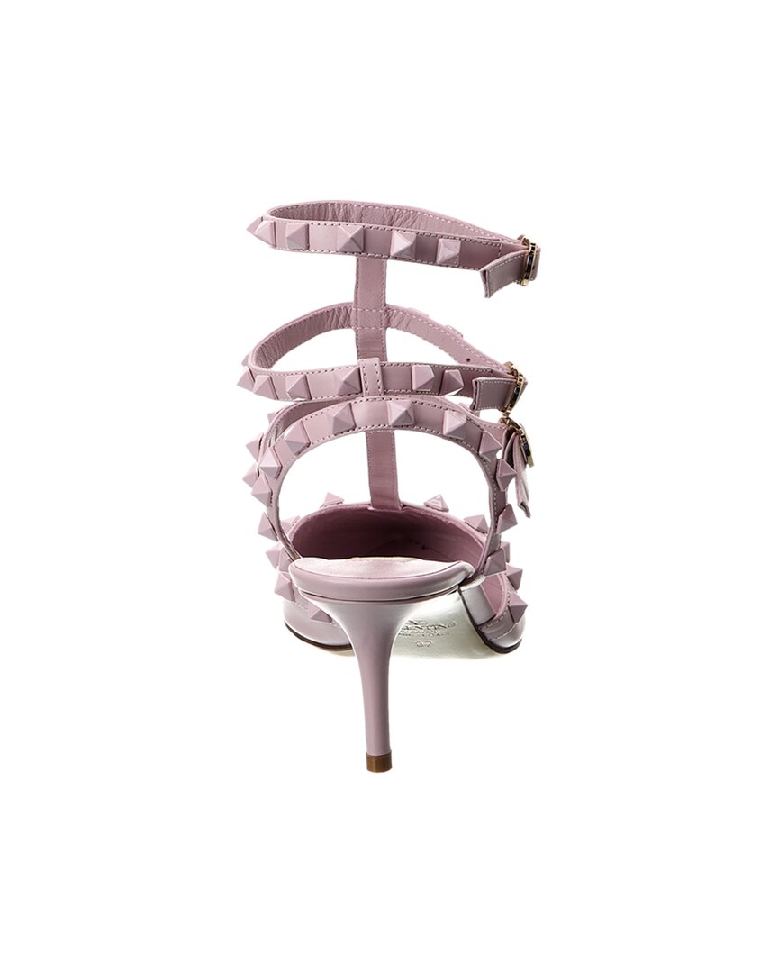 Valentino Rockstud Caged 65 Leather Ankle Strap Pump, 36, Pink