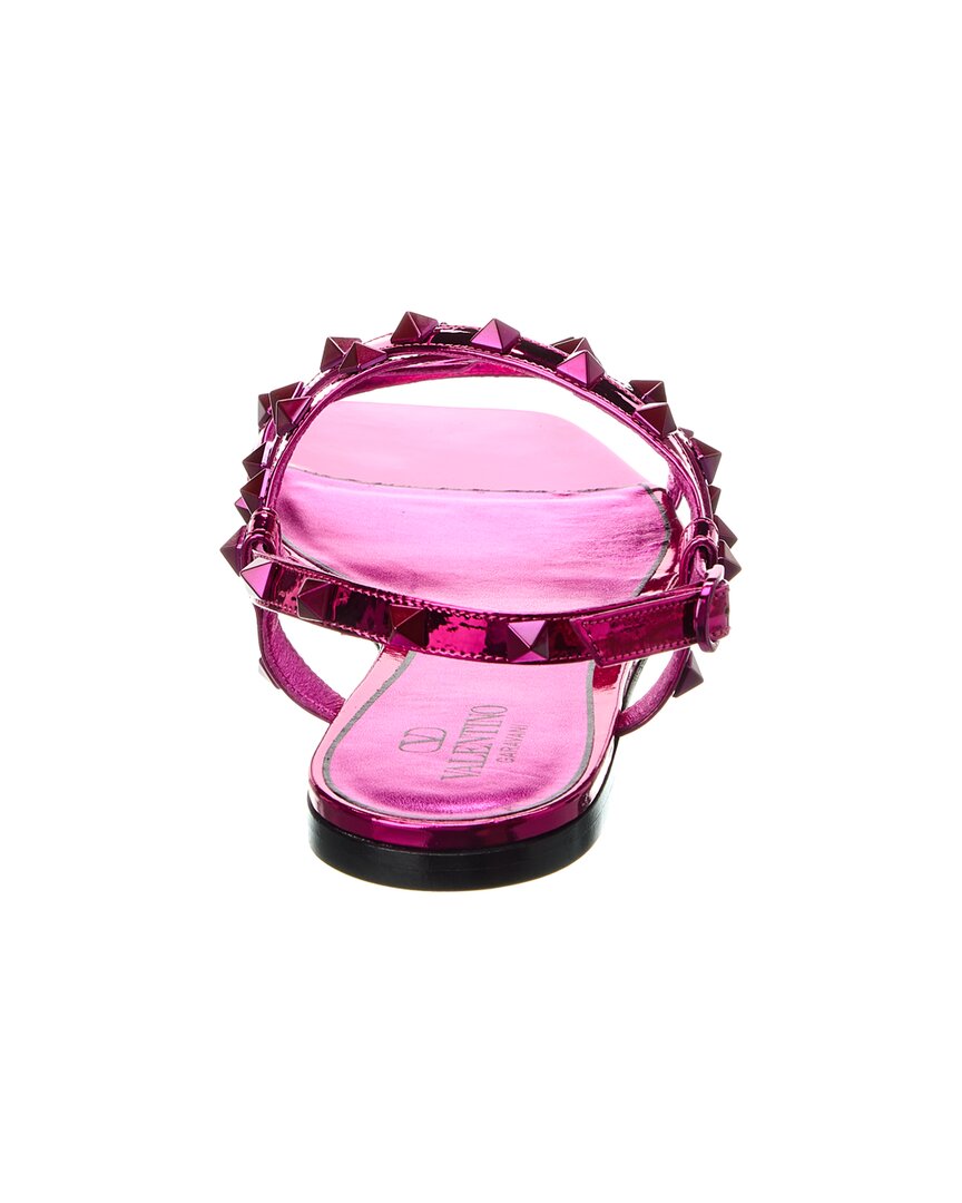 - Rockstud Leather Sandal In Metallic Pink Leather With Tonal Rockstuds
