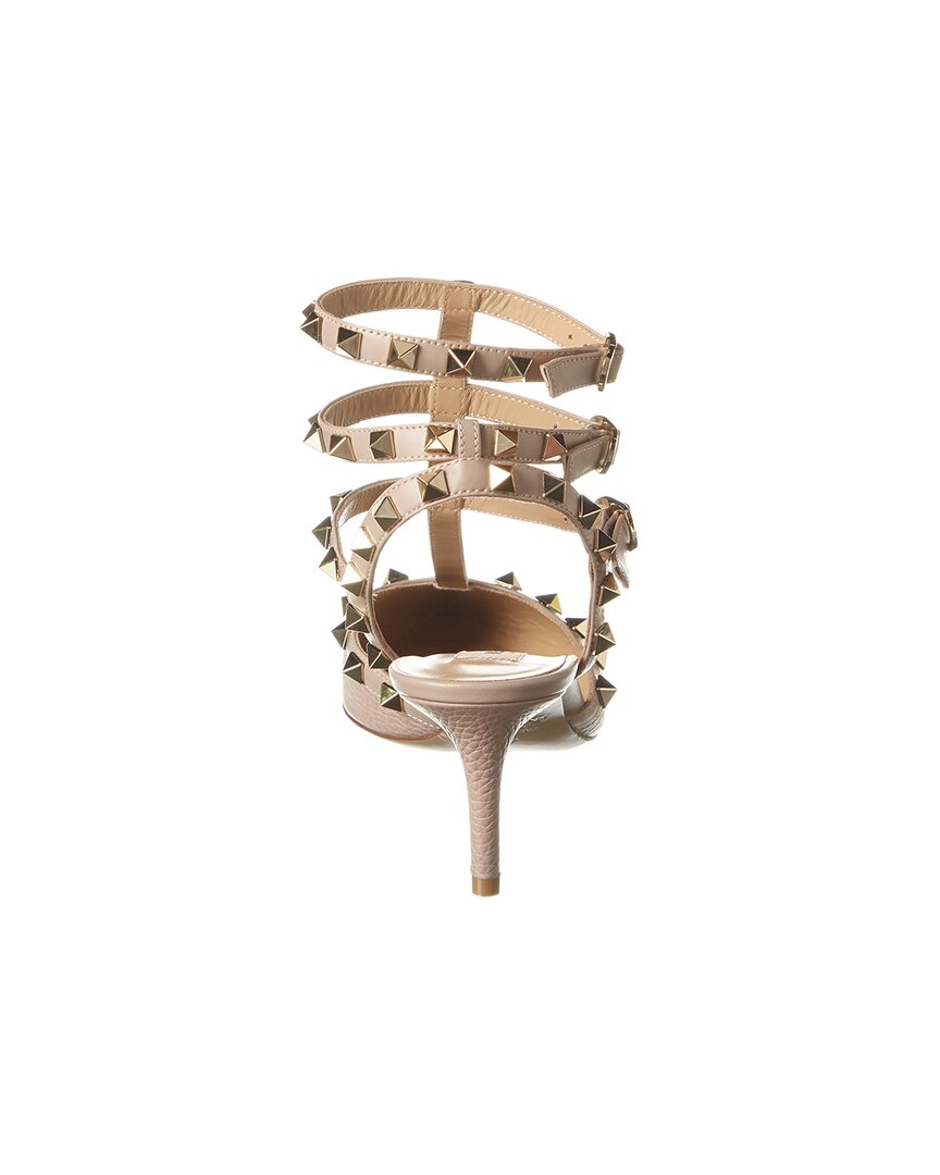 - Rockstud Caged 65 Leather Ankle Strap Pump In Beige Leather With Platinum-Finish Pyramid Stud Detailing