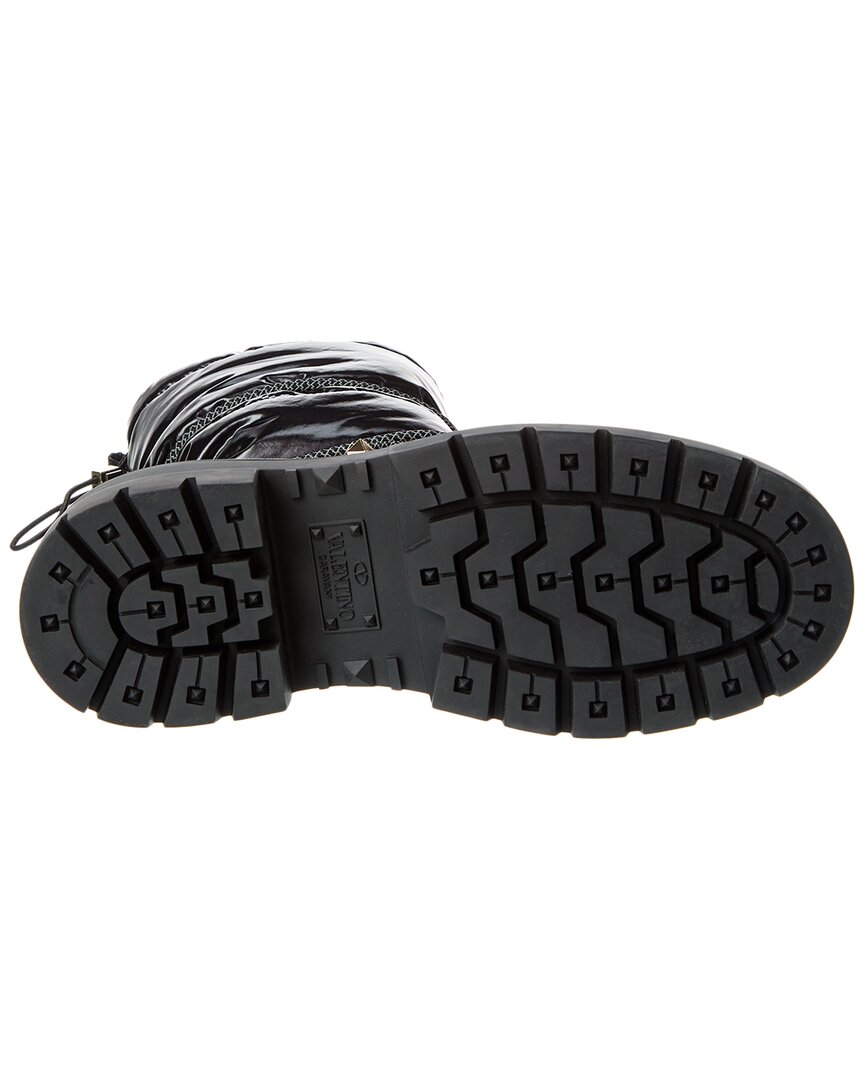 - Rockstud Leather Winter Bootie In Black Padded Textile, Leather And Rubber And Gold-Tone Hardware With Rockstuds And Drawcord Laces