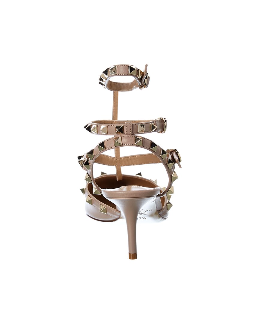 - Rockstud Caged 65 Leather Ankle Strap Pump In Powder Nappa Leather With Platinum-Finish Rockstuds
