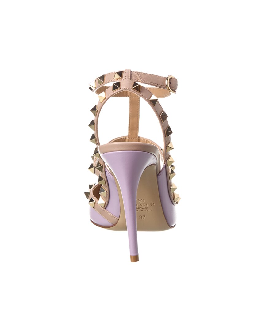 - Rockstud Caged 100 Leather Pump In Purple Leather With Powder Leather Trim And Platinum-Finish Rockstuds