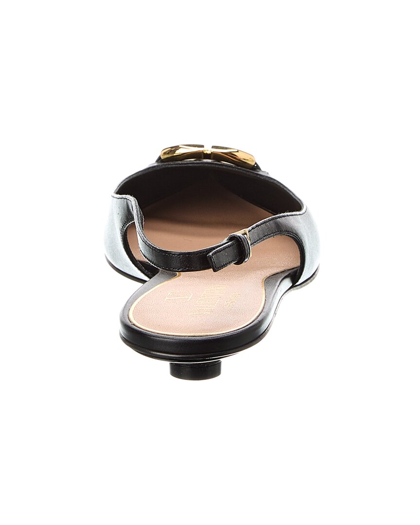 - Vlogo Signature Leather Slingback Pump In Black Leather And Gold-Tone Hardware With Vlogo Accent