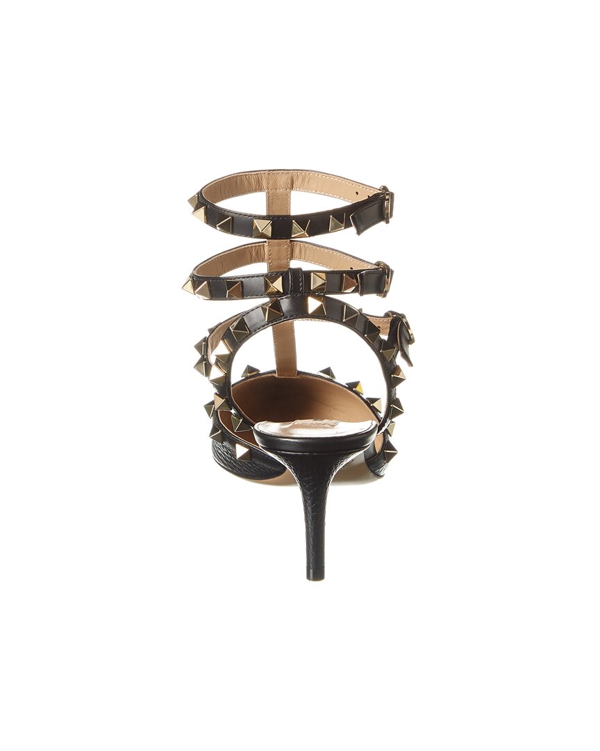 - Rockstud Caged 65 Leather Ankle Strap Pump In Black Leather With Platinum-Finish Pyramid Stud Detailing
