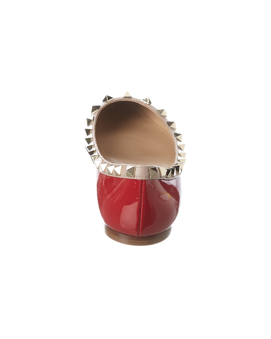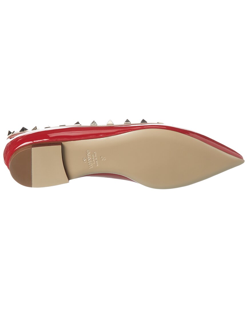 - Rockstud Patent Flat In Red Patent Leather With Platinum-Finish Rockstuds And Powder Leather Trim