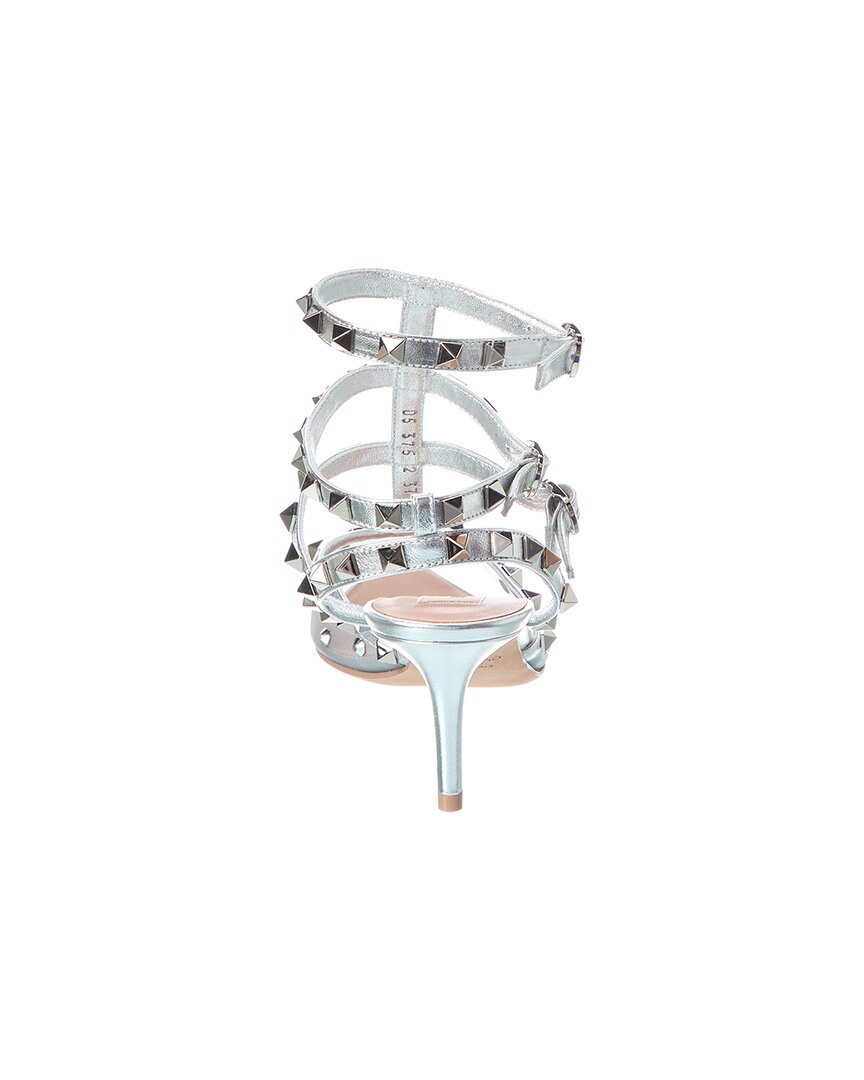 - Rockstud Caged 65 Mesh & Leather Pump In Silver Mesh And Leather And Silver-Tone Hardware With Rockstuds And Crystal Embellishments