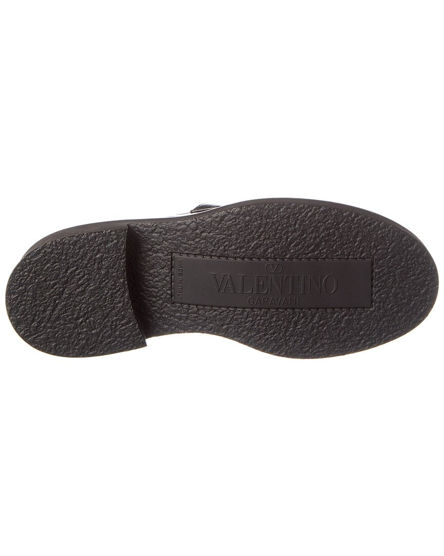 - Rockstud Leather Loafer In Black Leather And Gold-Tone Hardware With Vlogo Accent